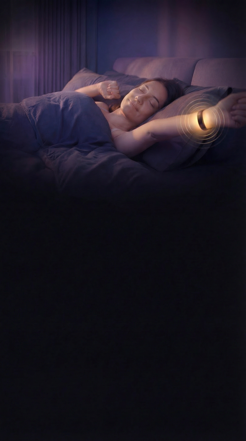 No more waking your partner. No more sleeping through alarms. No more heart-pounding panic at 6am. Just a gentle pulse on your wrist that guarantees you're up—calmly.