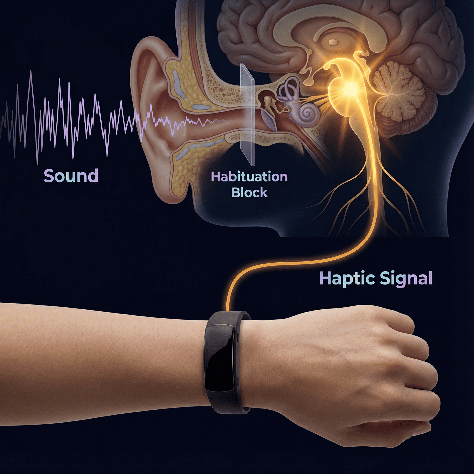 - Bypasses auditory cortex—processed by somatosensory system
