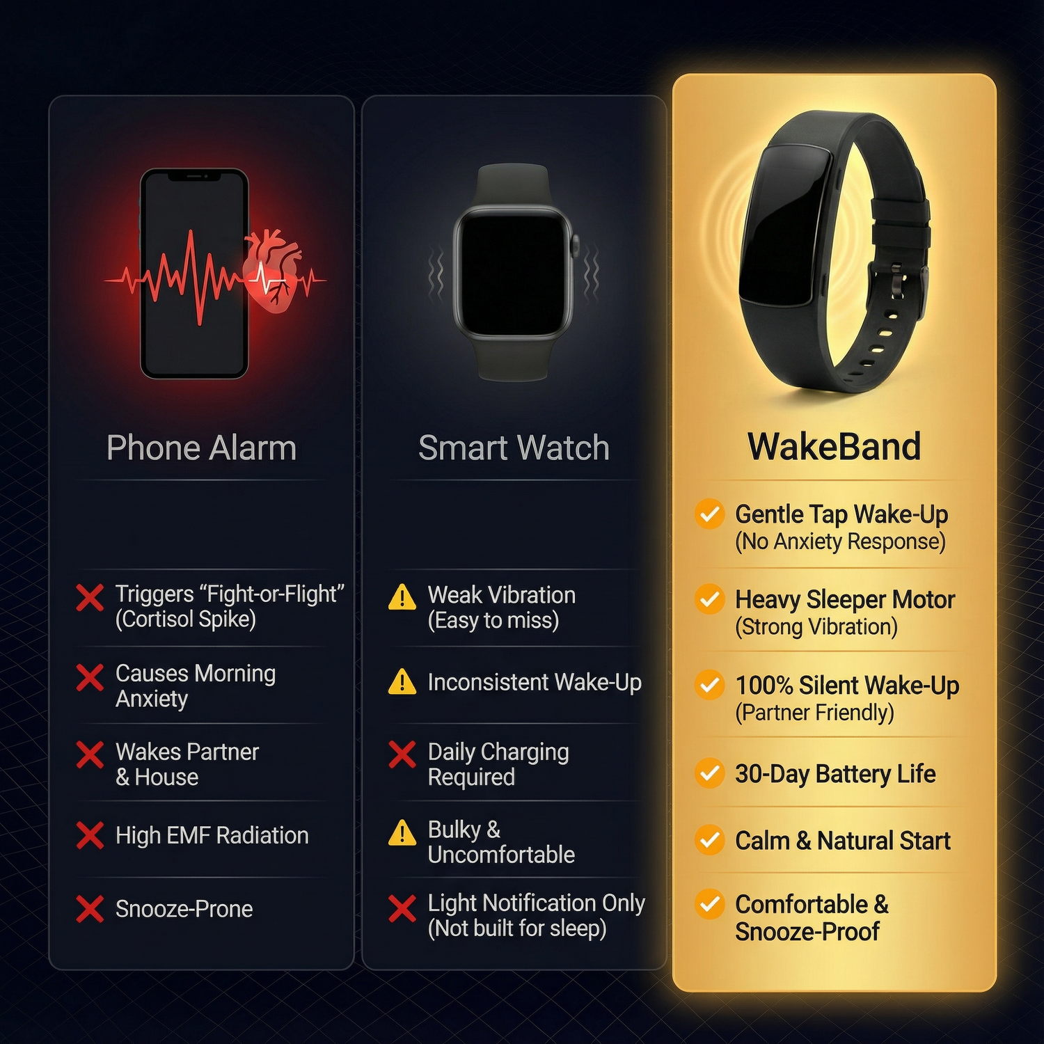 Whether you're saving your relationship, protecting your job, or just reclaiming your sanity—WakeBand delivers mornings you'll actually look forward to.